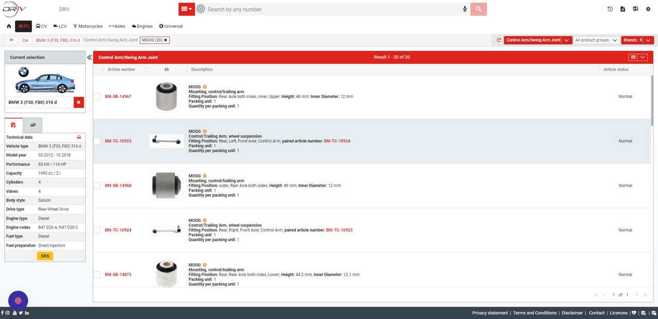 Schematy 3D MOOG układów kierowniczych i zawieszeń dostępne są teraz także za pomocą wyszukiwarki części MOOG, Driv e-cat i katalogu TecDoc. Baza jest stale aktualizowana i poszerza się o kolejne modele samochodów oraz o nowe referencje. Schematy 3D ułatwiają nie tylko pracę, ale także wyszukiwanie potrzebnych części.
